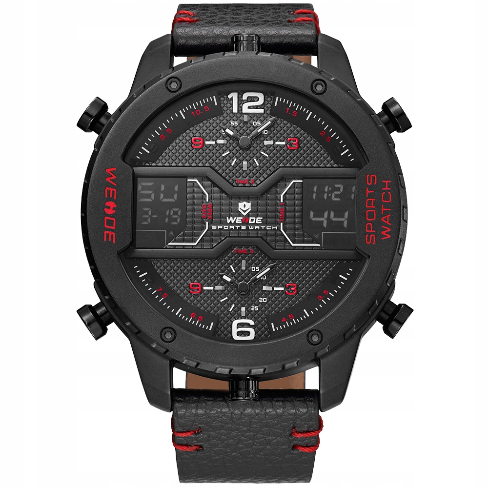 Najnowszy model WH6401 dostępny tylko u nas w 6. oryginalnych i pięknych wersjach kolorystycznych. Posiada 3 strefy czasowe (2 wskazówkowe + 1 cyfrowe LCD z podświetleniem LED).