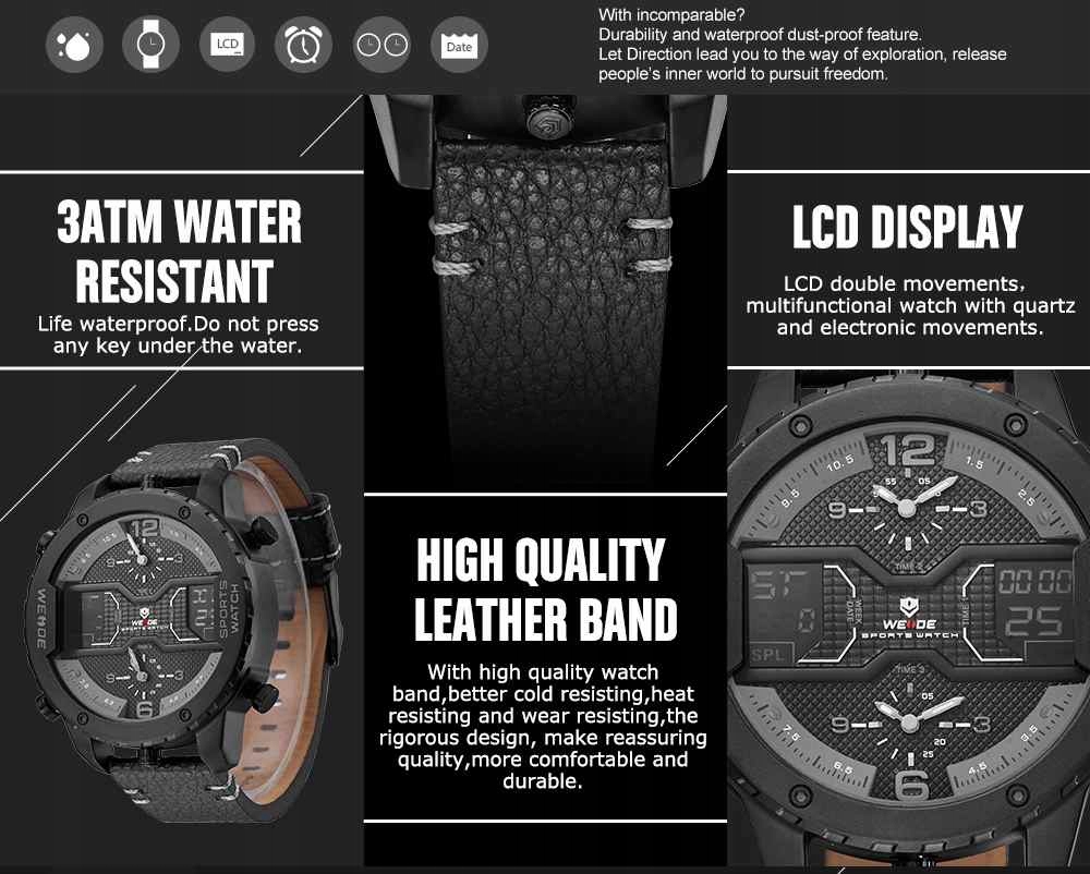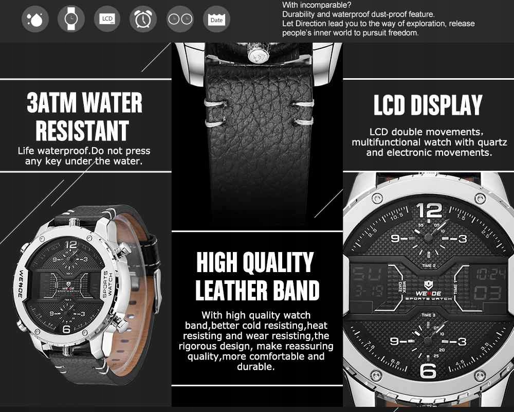 NEW2018 Zegarek męski WEiDE SHOCK XXL Skóra KOLORY
