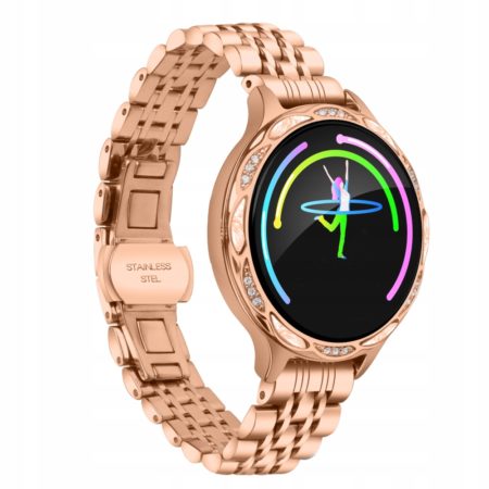Zegarek posiada kopertę wykonaną ze stali nierdzewnej oraz najnowszej generacji dotykowy ekran AMOLED o przekątnej 1,97″ E2E (edge to edge – do krawędzi) i rozdzielczości 390x450pix z kątem widzenia 178 stopni. W menu każdego zegarka do wyboru jest 7 zmiennych tarcz, a pozostałych ponad 100 możesz wgrać przez aplikację. Posiada 3-osiowy G-Sensor ruchu, dzięki któremu po podniesieniu ręki ekran zostanie automatycznie wybudzony i można zobaczyć godzinę oraz inne informacje. Po sparowaniu zegarka z telefonem wyświetla on także inteligentne powiadomienia o wiadomościach czy połączeniach dodatkowo wibrując. Nie musisz już nawet wyciągać telefonu z kieszeni aby zobaczyć czy ktoś do Ciebie dzwoni lub odczytać wiadomość! Spróbuj, a przekonasz się jakie to wygodne. Dzięki prostemu i intuicyjnemu menu obrazkowemu jego obsługa jest bardzo łatwa i przyjemna, a dodatkowo jest ono w j.polskim!