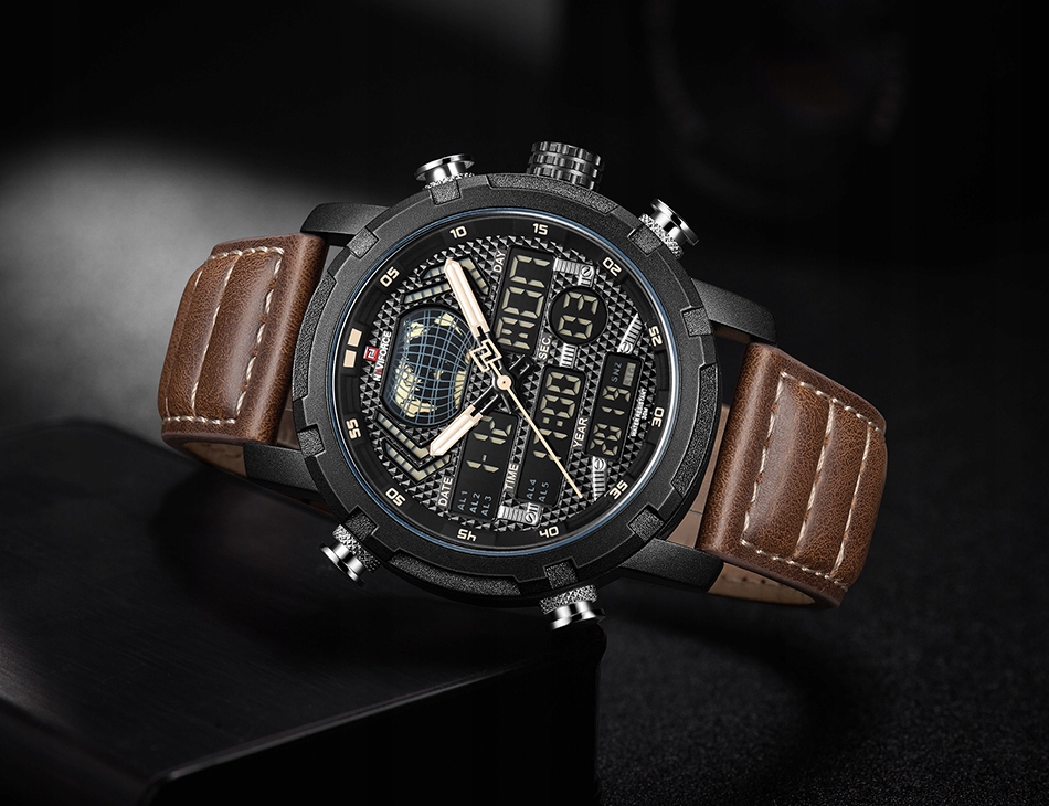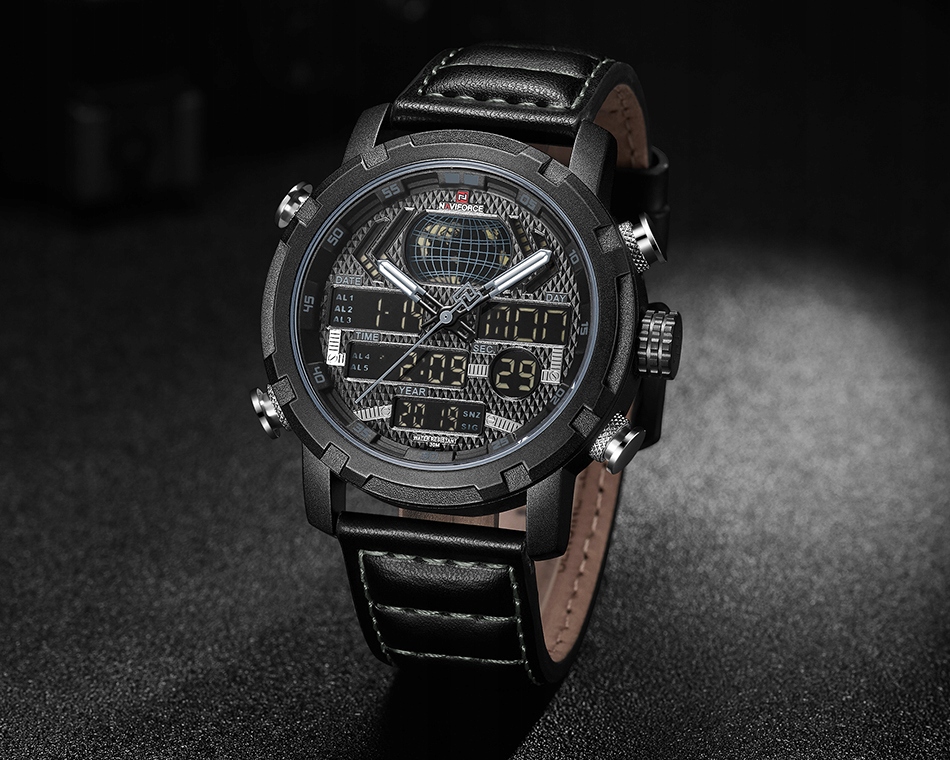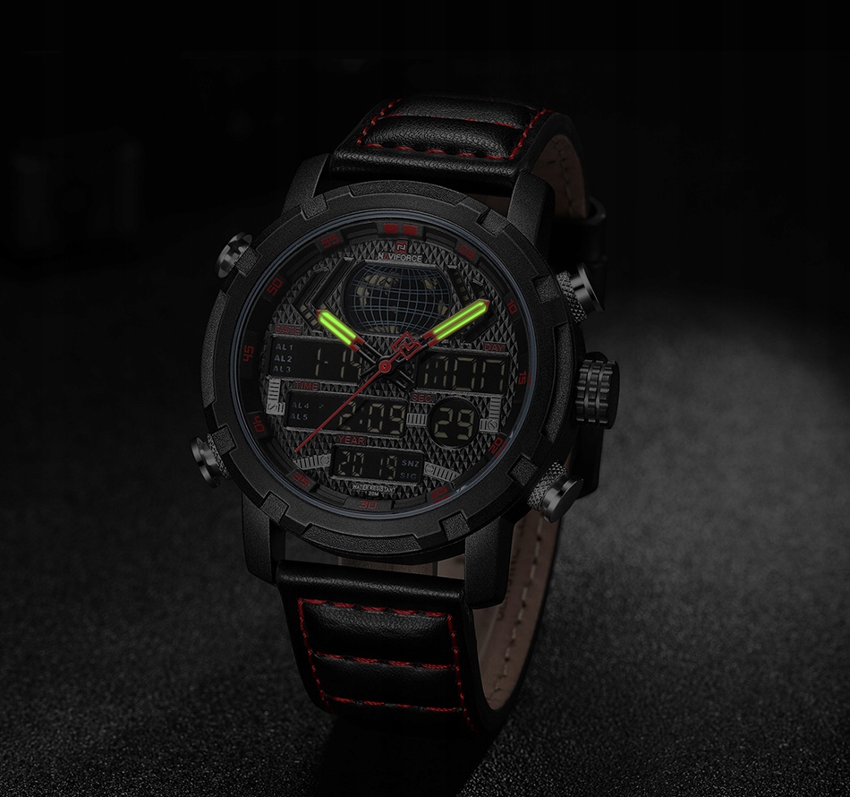 ZEGAREK MĘSKI NAVIFORCE NF9160 GLOBE LED SKÓRA